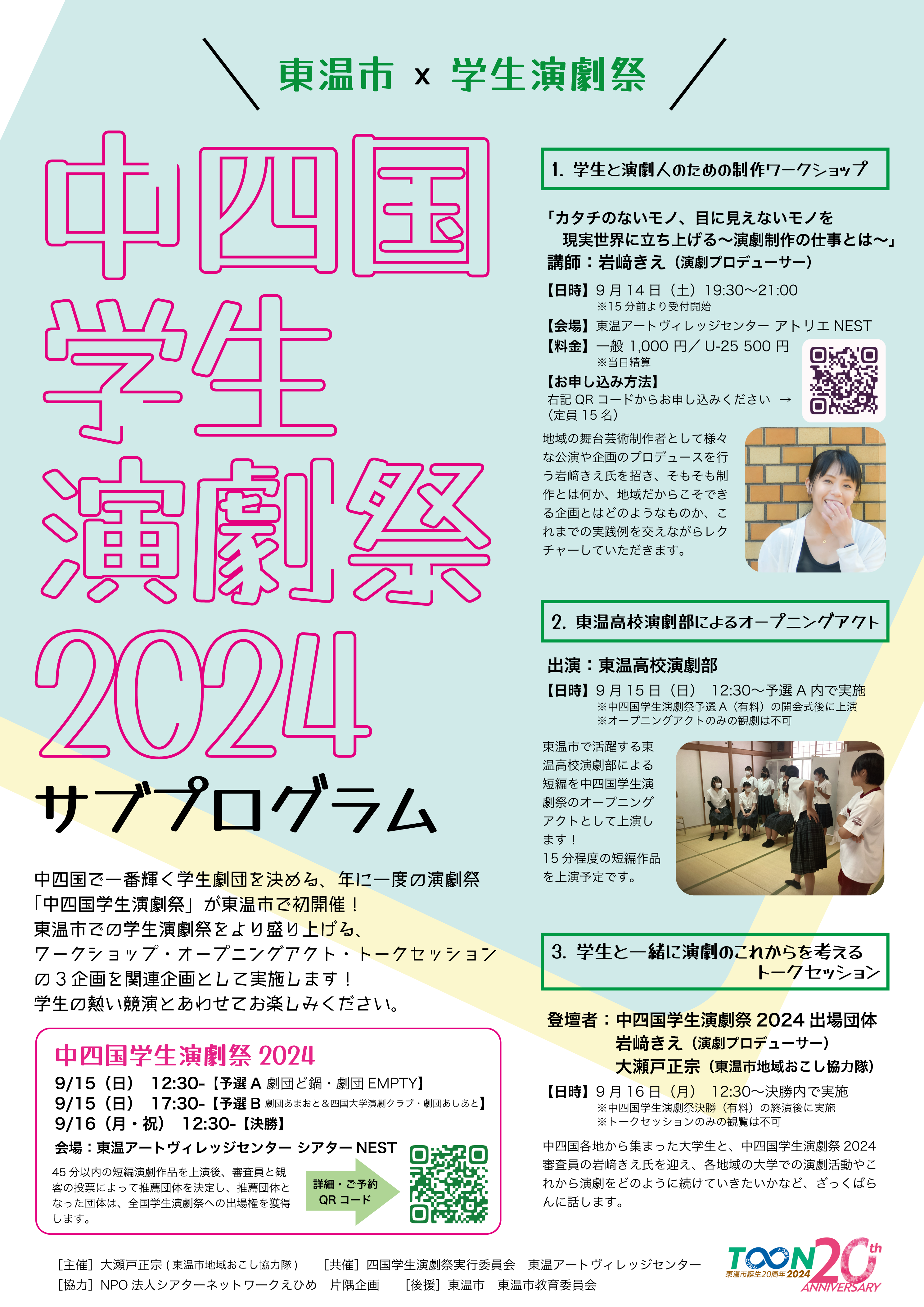 また、審査員の岩﨑きえ氏を招いた制作ワークショップや、東温高校演劇部によるオープニングイベントなどのサブプログラムも行われました。